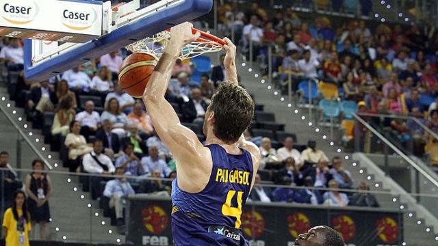 Pau Gasol y la joven estrella senegalesa en la NBA, Gorgui Dieng, comenzaron en ese momento un espectacular duelo por hacerse el dueño de la pintura (12-11), solventado a favor del pívot español (9 puntos en el primer acto), bien secundado por Serge Ibaka que dio frescura a los pupilos de Orenga.