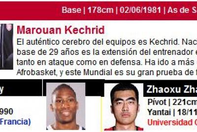 Pos - Selección - Posición - Jugador - Fecha Nac. 1 - China - Base - Ailun Guo - 14/11/1993 2 - Brasil - Base - Raul Neto - 19/05/1992 3 - Líbano - Alero - Ahmad Ibrahim - 18/02/1992 4 - Canada - Ala-Pívot - Kelly Olynyk - 19/04/1991 5 - China - Pívot - Jinhui Ding - 27/10/1990 6 - España - Base - Ricky Rubio - 21/10/1990 7 - Irán - Ala-pívot - Mohammad Hassanzadeh - 06/10/1990 8 - Irán - Ala-pívot - Arsalan Kazemi - 22/04/1990 9 - Francia - Base - Andrew Albicy - 21/03/1990 10 - Jordania - Pívot - Mohammad Shaher - 03/03/1990