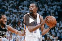 01:59 | Oklahoma City Thunder sacó adelante otro duro partido ante San Antonio, y con un enorme 4C lo derrotó por 111-97. Kevin Durant (41 puntos, marca más alta en Playoffs de su carrera) lideró el goleo de OKC. La serie, se vuelve a trasladar a San Antonio para el quinto juego, el martes. Emanuel Ginóbili anotó 9 puntos en 21m.