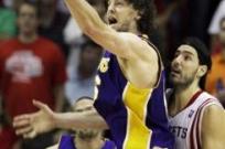 20:08 | Con los mismos argumentos que su rival los Lakers eliminaron a los Rockets en el séptimo juego tras vencerlos por un apabullante 89-70. La defensa angelina y el domino abrumador en la pintura fueron las claves. Scola terminó con 11 puntos. Gasol fue la figura. Por segunda vez en estos playoff Los Angeles no alcanzó los 100 tantos como local.