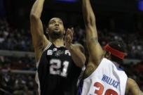 08:25 | Luego de dos derrotas consecutivas San Antonio volvió a la victoria tras vencer a los Detroit Pistons por 83 a 79 en condición de visitante. Tim Duncan y Tony Parker guiaron al equipo con 18 y 19 puntos, respectivamente. Oberto terminó con un tanto, Herrmann no jugó. Los estudios arrojaron malas noticias y Ginóbili tendrá que estar inactivo al menos dos semanas más.