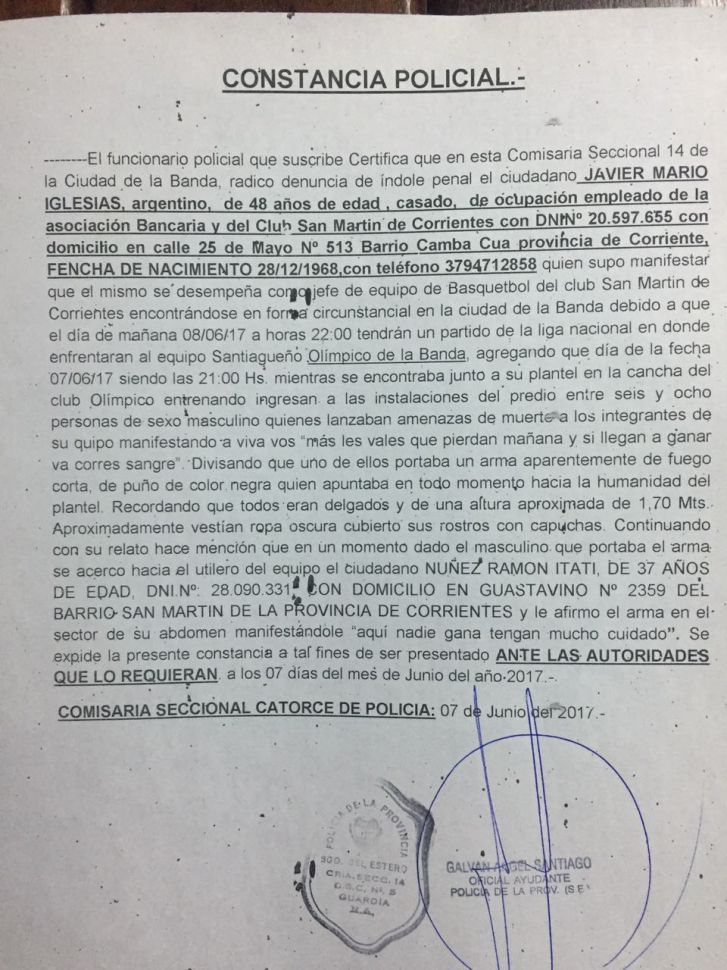 Amenazas al plantel de San Martín en La Banda