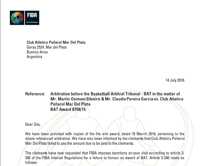 Peñarol perdió un juicio contra Osimani